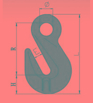 | SIZE | WT./KG | WLL/T | B.L/T | E | Ø | H | R | L |